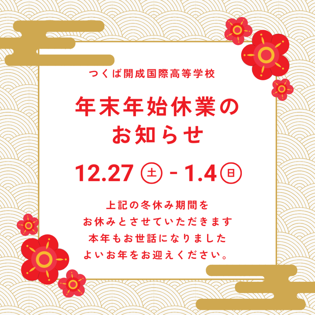 冬休み期間のお知らせ | 沖縄本校 | 学校法人つくば開成学園 つくば開成国際高等学校